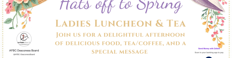 Upcoming Events Truth Seekers – A Women’s Book Club April 23, 2026 / Every Month 10:00 am – 11:00 am Faithful Men April 23 – 25, 2026 Men’s Bible Study April 25, 2026 / Every Week 8:00 am – 9:00 am Women’s Bible Study April 25, 2026 / Every Month 9:00 am – 10:15 am Sunday Services April 26, 2026 / Every Week 9:00 am (Sunday School) 10:15 am (Sunday Worship Service) Thru-the-Bible: Discussion April 27, 2026 / Every Week 9:00 am – 10:00 am / Feel free to ask Pastor any questions you might have. Wednesday Family Night April 29, 2026 / Every Week 7:00 pm – 8:30 pm / Fellowship after all classes Ladies’ Spring Tea May 2, 2026 Sunday Care Group May 3, 2026 / Every Month Monday Care Group May 4, 2026 / Every Month